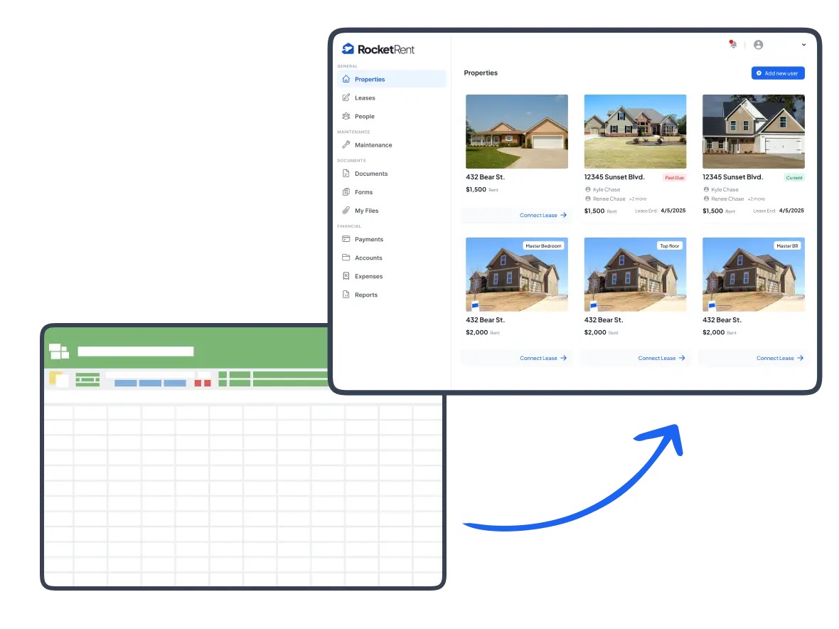 Say goodbye to manual data entry, formula errors, and time-consuming updates. Manage your rentals more efficiently without spending a dime. RocketRent offers all the organization of your spreadsheets plus powerful automation—at no cost. Our user-friendly platform streamlines your property management tasks, from rent tracking to expense categorization. Upgrade your rental management today and reclaim your time, all for free.