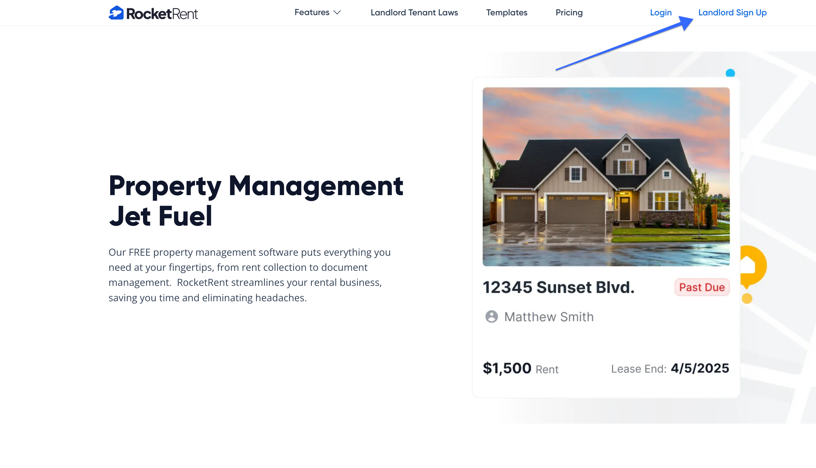 1. Click on Landlord Sign Up from the RocketRent.com home screen.
